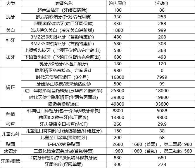 項目 | 次數(shù) | 價格 | 備注 |